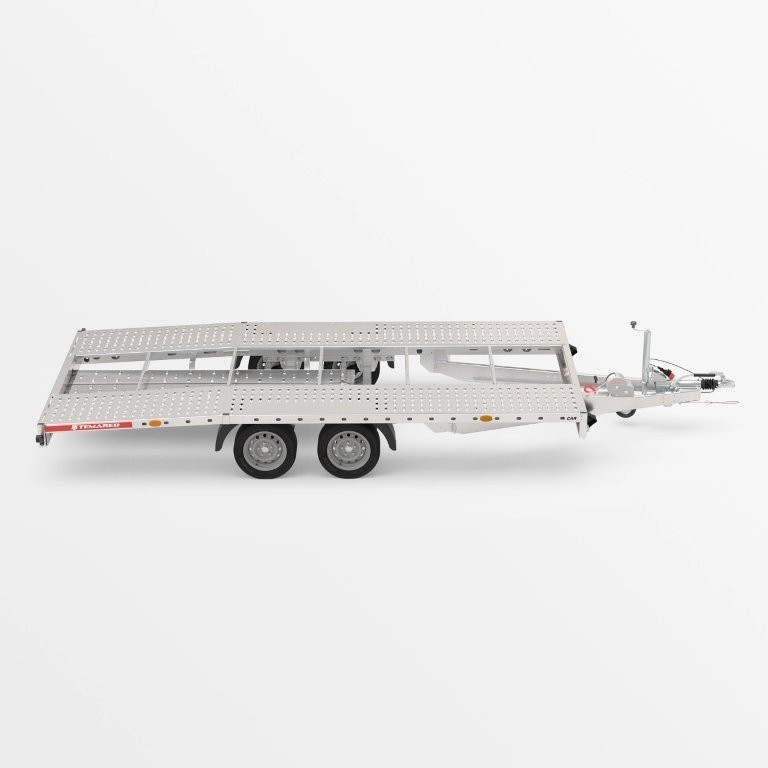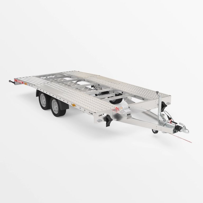 Anhänger für den Fahrzeugtransport mit stabiler, geschweißter Konstruktion.