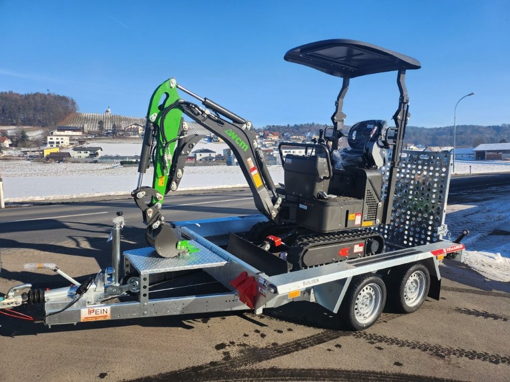 Aktionsangebot: Minibagger 1,2 t inkl. Schaufel 300 mm inkl. hydraulischen Daumengreifer und Schnellkuppler & Baumaschinenanhänger Builder 2615
