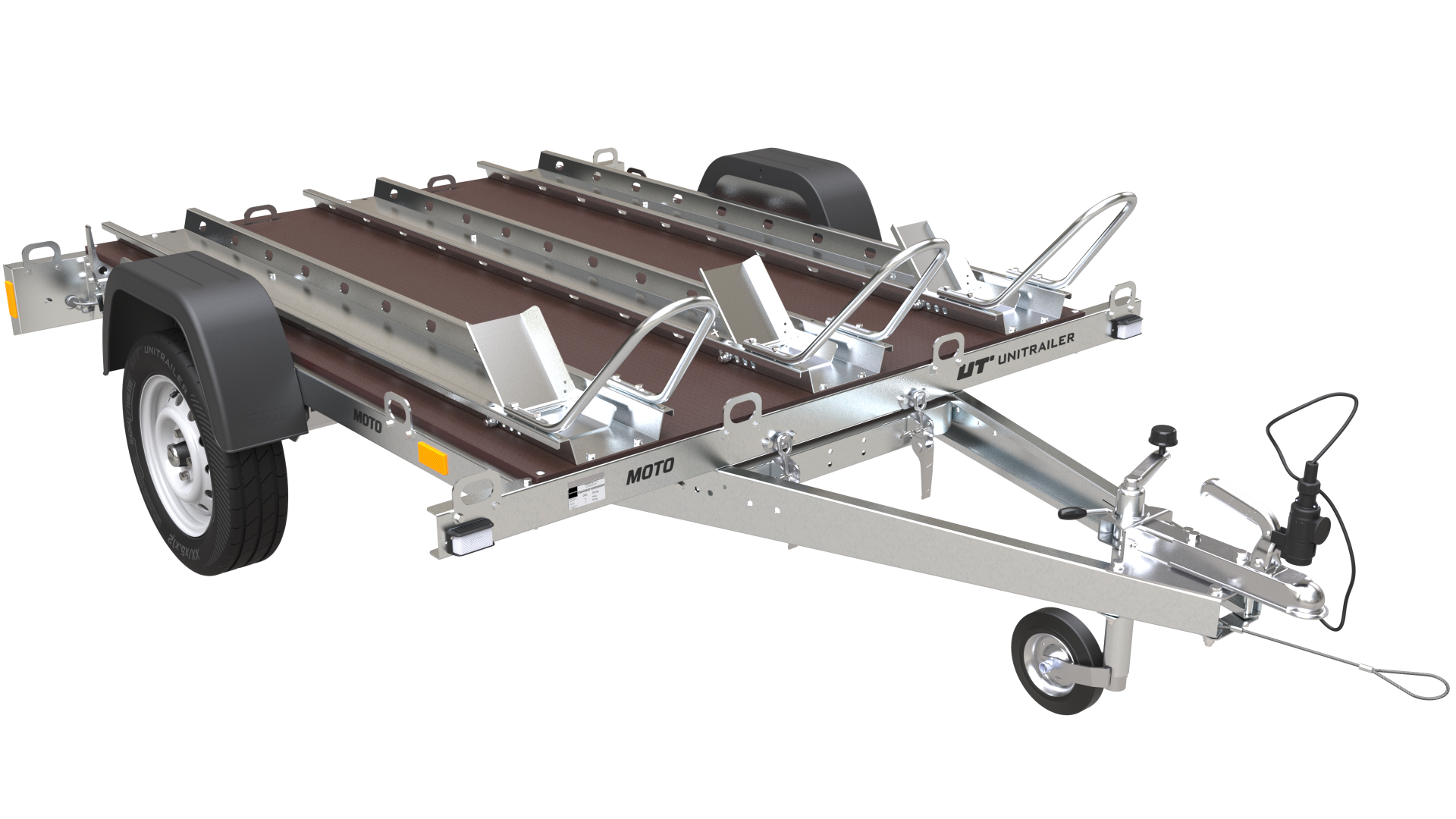 Mit unserem MOTO-Anhänger können Sie einfach und schnell 3 Maschinen transportieren.