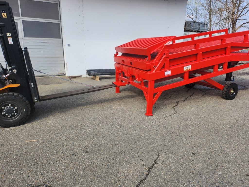 In der modernen Logistik ist Zeit Geld. Über unsere 8 to mobile Laderampe können Sie Be-und Entladearbeiten problemlos und gefahrlos durchführen. Die Verladerampe ermöglicht es Ihnen, mit einem Stapler, Hubwagen oder Maschinen in den Laderaum zu fahren oder Frachten/Maschinen/Fahrzeuge aus dem Frachtraum zu bewegen - dabei ist die Rampe mobil und bereits mit einem kleinen Stapler rangierbar!
